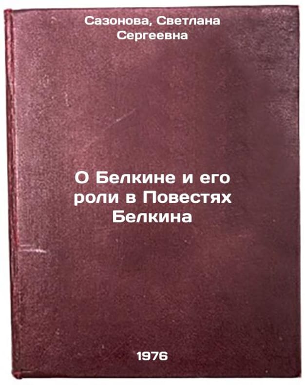 In Russian. Sazonova, Svetlana Sergeevna. About Belkin and his role in Belkin's Agenda. Riga: Latvian un-t, 1976. O Belkine i ego roli v Povestyakh Belkina. In Russian /On Belkin and his role in The Belkin Agenda . All images are for identification of editions only. Several books of the same edition may be available. Please feel free to request photos of available books. SKU6995774