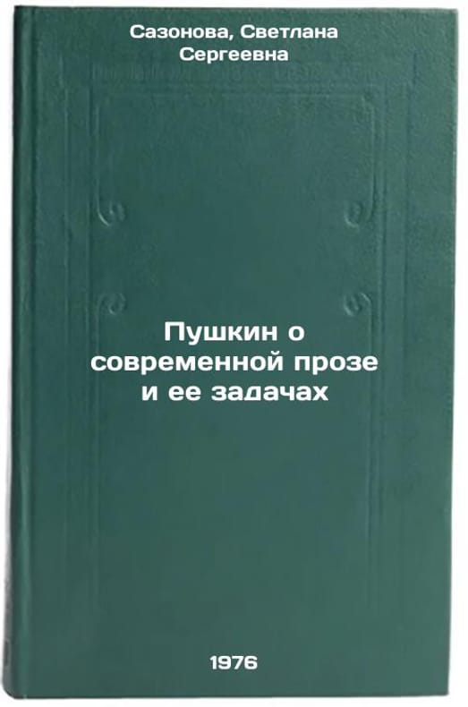 In Russian. Sazonova, Svetlana Sergeevna. Pushkin about modern prose and its tasks. Riga: Latvian un-t, 1976. Pushkin o sovremennoy proze i ee zadachakh. In Russian /Pushkin on contemporary prose and its tasks . All images are for identification of editions only. Several books of the same edition may be available. Please feel free to request photos of available books. SKU6995776