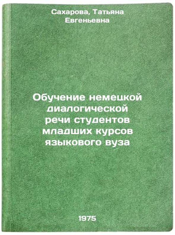 In Russian. Sakharova, Tatyana Evgenievna. Teaching German dialogical speech to junior language students. Moscow: 1975. Obuchenie nemetskoy dialogicheskoy rechi studentov mladshikh kursov yazykovogo vuza. In Russian /Teaching German dialectical speech to junior language students. All images are for identification of editions only. Several books of the same edition may be available. Please feel free to request photos of available books. SKU6996561