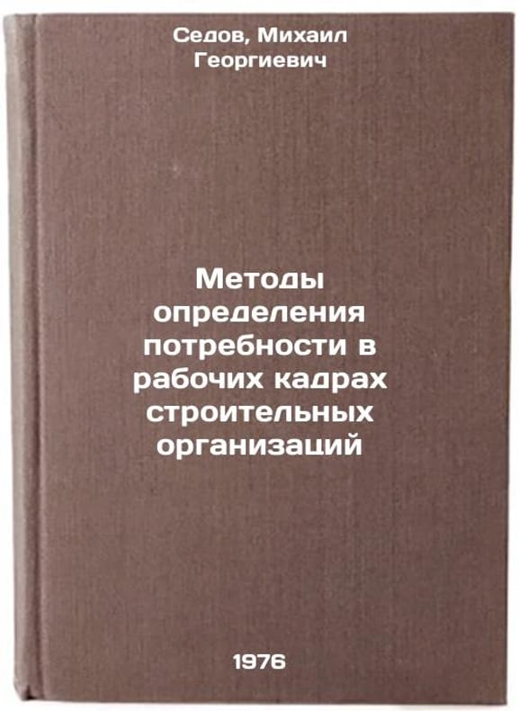 In Russian. Sedov, Mikhail Georgievich. Methods of determining the need for manpower in construction organizations. Moscow: Stroyizdat, 1976. Metody opredeleniya potrebnosti v rabochikh kadrakh stroitel'nykh organizatsiy. In Russian /Methods for determining the need for construction workers . All images are for identification of editions only. Several books of the same edition may be available. Please feel free to request photos of available books. SKU6997440