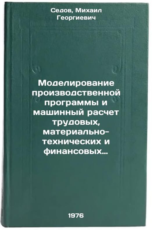 In Russian. Sedov, Mikhail Georgievich. Modeling the production program and the machine calculation of labor, material, technical, and financial resources. Moscow: Stroyizdat, 1976. Modelirovanie proizvodstvennoy programmy i mashinnyy raschet trudovykh, material'no-tekhnicheskikh i finansovykh resursov. In Russian /Program Modeling and Machine Calculation of Labour, Logistics, and Financial Resources . All images are for identification of editions only. Several books of the same edition may be available. Please feel free to request photos of available books. SKU6997441