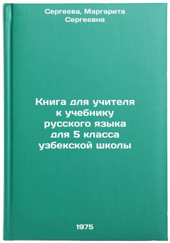 In Russian. Sergeeva, Margarita Sergeevna. Teacher's book to the Russian language textbook for the 5th grade of an Uzbek school. Tashkent: Ukituvchi, 1975. Kniga dlya uchitelya k uchebniku russkogo yazyka dlya 5 klassa uzbekskoy shkoly. In Russian /Teacher's Book to the Russian Language Textbook for the 5th grade of Uzbek School. All images are for identification of editions only. Several books of the same edition may be available. Please feel free to request photos of available books. SKU6998159