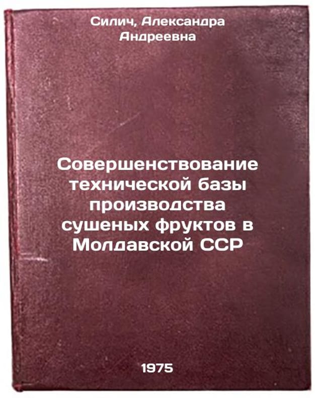 In Russian. Silich, Alexandra Andreevna. Improvement of the Technical Base for Dried Fruit Production in the Moldovan SSR. Chisinau: MoldNIINTI, 1975. All images are for identification of editions only. Several books of the same edition may be available. Please feel free to request photos of available books.SKU6998744