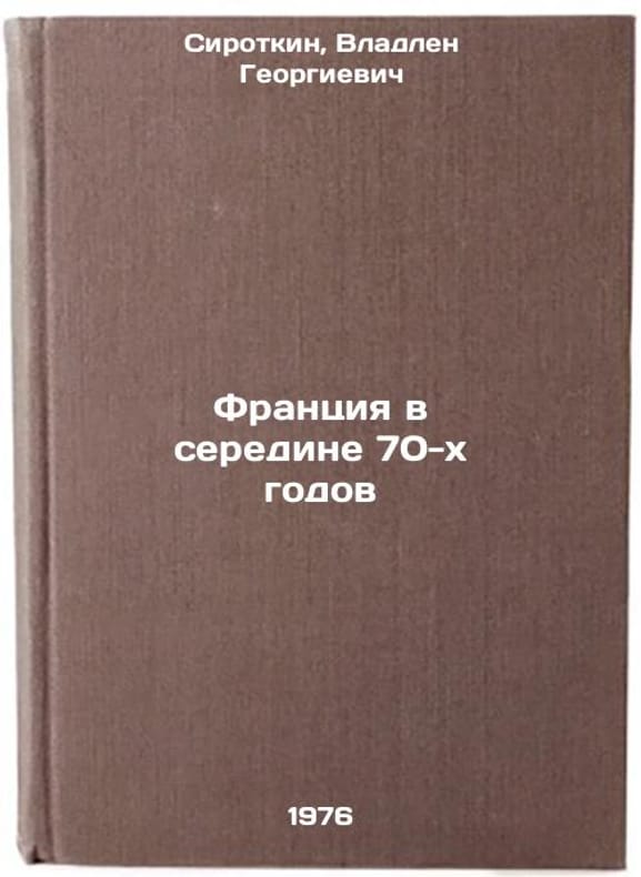 In Russian. Sirotkin, Vladlen Georgievich. France in the mid-1970s. Moscow: Znanie, 1976. All images are for identification of editions only. Several books of the same edition may be available. Please feel free to request photos of available books. SKU6999167