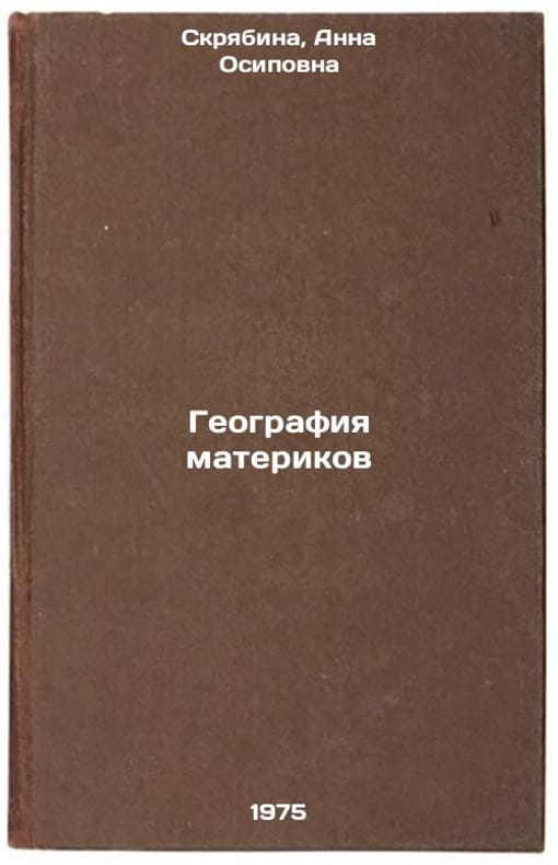 In Russian. Skryabina, Anna Osipovna. Geography of the Continents. Moscow: Enlightenment, 1975. All images are for identification of editions only. Several books of the same edition may be available. Please feel free to request photos of available books. SKU6999699