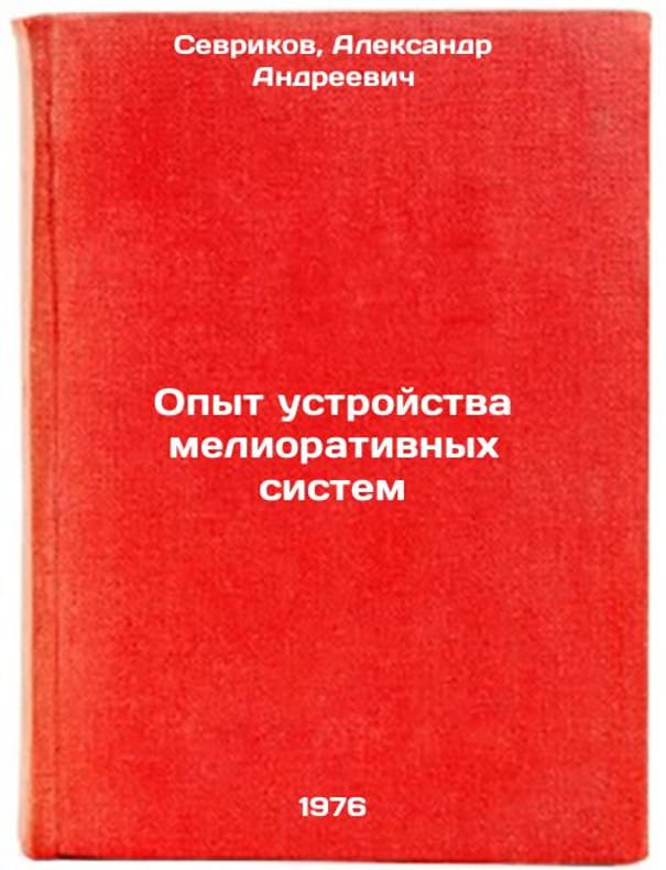 In Russian. Sevrikov, Alexander Andreevich. Experience in the design of reclamation systems. Moscow: 1976. Opyt ustroystva meliorativnykh sistem. In Russian /Experience with the design of reclamation systems . All images are for identification of editions only. Several books of the same edition may be available. Please feel free to request photos of available books. SKU7000210