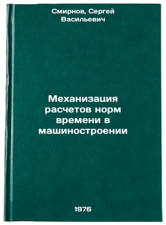 In Russian. Smirnov, Sergey Vasilievich. Mechanization of Calculations of Time Standards in Mechanical Engineering. Moscow: Mechanical Engineering, 1976. Mekhanizatsiya raschetov norm vremeni v mashinostroenii. In Russian /Mechanization of Time Standard Calculations in Mechanical Engineering . All images are for identification of editions only. Several books of the same edition may be available. Please feel free to request photos of available books. SKU7000771