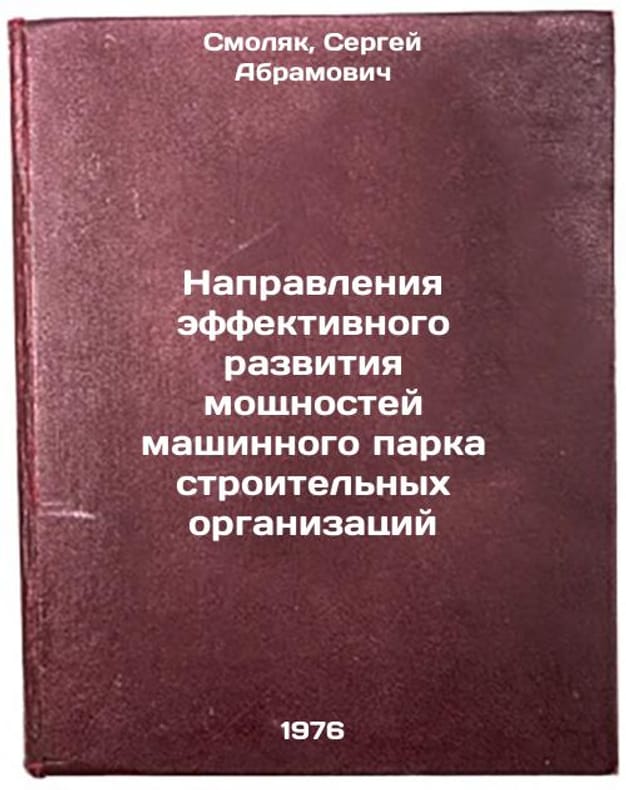 In Russian. Smolyak, Sergei Abramovich. Directions for the effective development of the capacities of the machinery fleet of construction organizations. Moscow: Stroyizdat, 1976. Napravleniya effektivnogo razvitiya moshchnostey mashinnogo parka stroitel'nykh organizatsiy. In Russian /Directions for the effective development of the capacity of the machinery fleet of construction organizations . All images are for identification of editions only. Several books of the same edition may be available. Please feel free to request photos of available books. SKU7000937