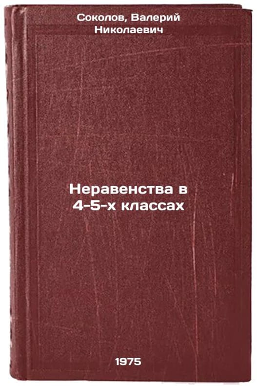 In Russian. Sokolov, Valery Nikolaevich. Inequality in grades 4-5. Krasnodar: Book of Editions, 1975. All images are for identification of editions only. Several books of the same edition may be available. Please feel free to request photos of available books. SKU7001372