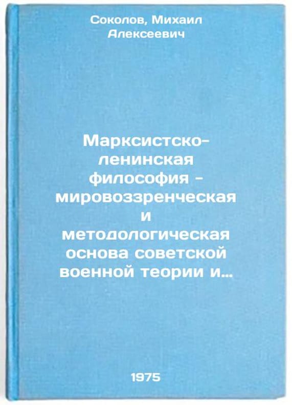 In Russian. Sokolov, Mikhail Alekseevich. Marxist-Leninist philosophy - the worldview and methodological basis of Soviet military theory and practice. Moscow: 1975. Marksistsko-leninskaya filosofiya - mirovozzrencheskaya i metodologicheskaya osnova sovetskoy voennoy teorii i praktiki. In Russian /Marxist-Leninist philosophy - the worldview and methodological basis of Soviet military theory and practice. All images are for identification of editions only. Several books of the same edition may be available. Please feel free to request photos of available books. SKU7001428