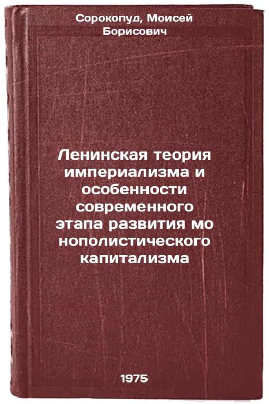In Russian. Sorokopud, Moisey Borisovich. Leningrad theory of imperialism and peculiarities of the modern stage of development of monopoly capitalism. Leningrad: 1975. Leninskaya teoriya imperializma i osobennosti sovremennogo etapa razvitiya monopolisticheskogo kapitalizma. In Russian /Lenin's theory of imperialism and peculiarities of the modern stage of development of monopoly capitalism. All images are for identification of editions only. Several books of the same edition may be available. Please feel free to request photos of available books. SKU7001725