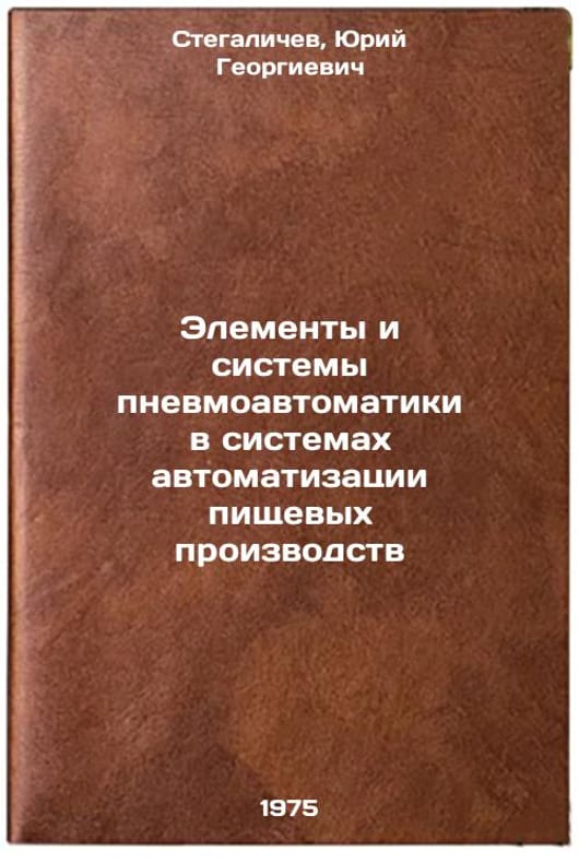 In Russian. Stegalichev, Yuri Georgievich. Elements and systems of pneumatic automation in systems of automation of food production. Leningrad: 1975. Elementy i sistemy pnevmoavtomatiki v sistemakh avtomatizatsii pishchevykh proizvodstv. In Russian /Components and pneumatic automation systems in food automation systems. All images are for identification of editions only. Several books of the same edition may be available. Please feel free to request photos of available books. SKU7002735