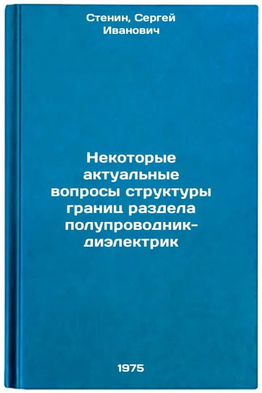 In Russian. Stenin, Sergei Ivanovich. Some actual issues of the structure of the boundaries of the semiconductor-dielectric division. Novosibirsk: 1975. Nekotorye aktual'nye voprosy struktury granits razdela poluprovodnik-dielektrik. In Russian /Some topical issues in the structure of the boundaries of the semiconductor-dielectric divide. All images are for identification of editions only. Several books of the same edition may be available. Please feel free to request photos of available books. SKU7002766
