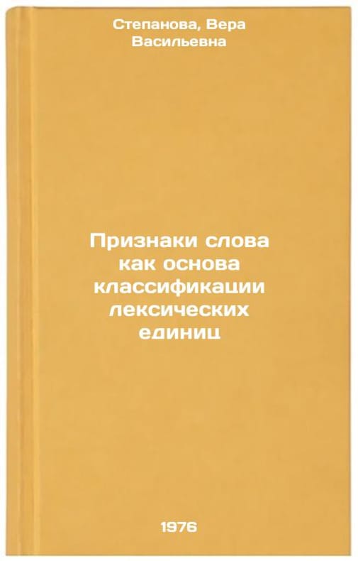 In Russian. Stepanova, Vera Vasilievna. Signs of a word as a basis for the classification of lexical units. Leningrad: LGPI, 1976. Priznaki slova kak osnova klassifikatsii leksicheskikh edinits. In Russian /Word traits as a basis for classifying vocabulary units . All images are for identification of editions only. Several books of the same edition may be available. Please feel free to request photos of available books. SKU7002882