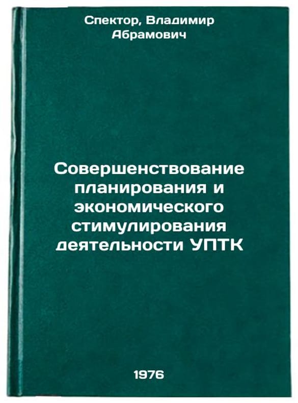 In Russian. Spector, Vladimir Abramovich. Improvement of Planning and Economic Stimulation of the Activities of the UPTC. Moscow: 1975 (issued in 1976). Sovershenstvovanie planirovaniya i ekonomicheskogo stimulirovaniya deyatel'nosti UPTK. In Russian /Improving Planning and Economic Stimulus for TPTC Activities . All images are for identification of editions only. Several books of the same edition may be available. Please feel free to request photos of available books. SKU7003081