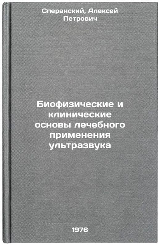 In Russian. Speransky, Alexey Petrovich. Biophysical and Clinical Basics of the Medical Application of Ultrasound. Moscow: COLIUV, 1976. Biofizicheskie i klinicheskie osnovy lechebnogo primeneniya ul'trazvuka. In Russian /Biophysical and clinical fundamentals of the therapeutic application of ultrasound . All images are for identification of editions only. Several books of the same edition may be available. Please feel free to request photos of available books. SKU7003122