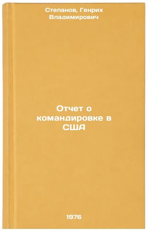 In Russian. Stepanov, Genrikh Vladimirovich. Report on a mission to the USA. Moscow: 1976. Otchet o komandirovke v SShA. In Russian /Report on a mission to the United States . All images are for identification of editions only. Several books of the same edition may be available. Please feel free to request photos of available books. SKU7003310