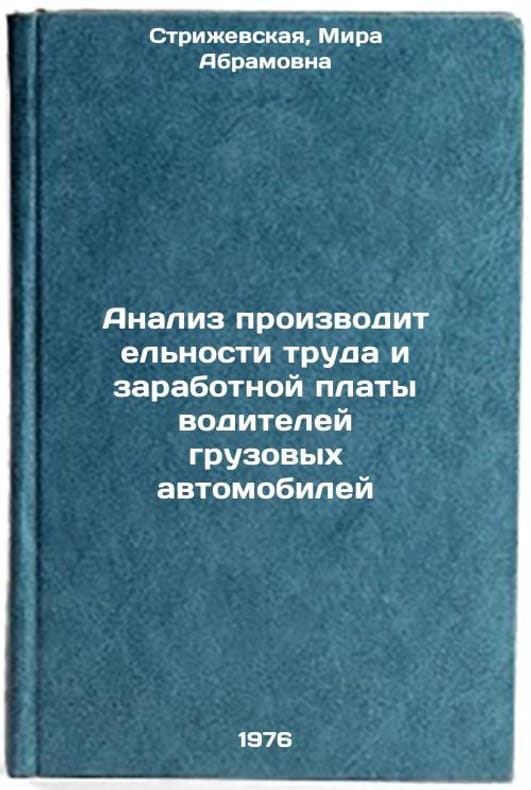 In Russian. Strizhevskaya, Mira Abramovna. Analysis of productivity and wages of truck drivers. Moscow: 1976. Analiz proizvoditel'nosti truda i zarabotnoy platy voditeley gruzovykh avtomobiley. In Russian /Analysis of productivity and wages of truck drivers . All images are for identification of editions only. Several books of the same edition may be available. Please feel free to request photos of available books. SKU7003676