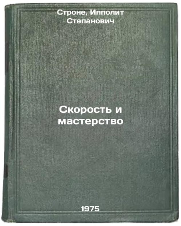 In Russian. Strone, Ippolit Stepanovich. Speed and skill. Chisinau: Map of Moldovenyasca, 1975. All images are for identification of editions only. Several books of the same edition may be available. Please feel free to request photos of available books.SKU7003808