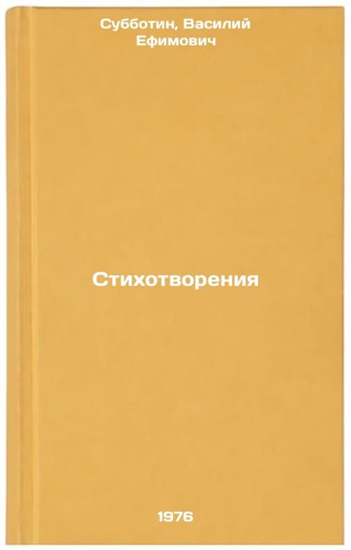 In Russian. Subbotin, Vasily Efimovich. Poems. Moscow: Soviet Russia, 1976. All images are for identification of editions only. Several books of the same edition may be available. Please feel free to request photos of available books. SKU7004025