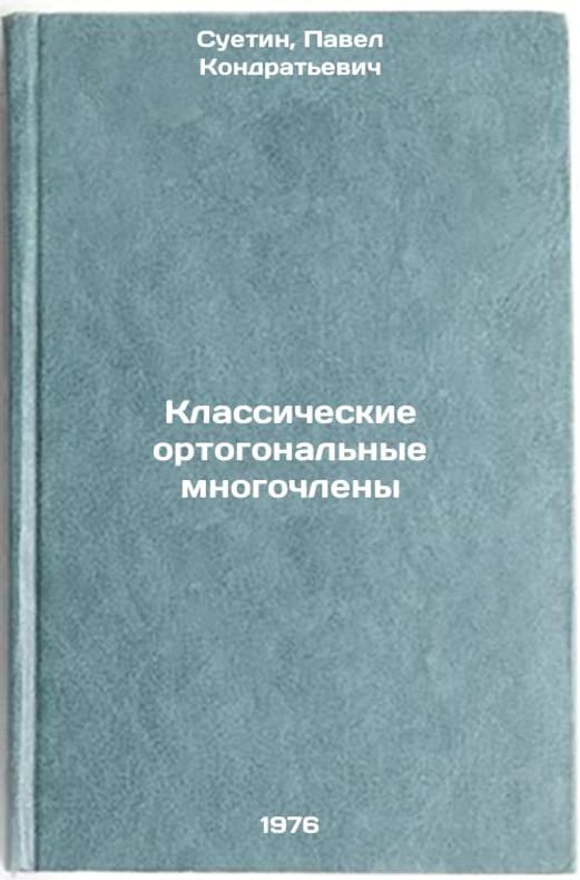 In Russian. Suetin, Pavel Kondratievich. Classical orthogonal polynomials. Moscow: Science, 1976. Klassicheskie ortogonal'nye mnogochleny. In Russian /Classical orthogonal polynomials . All images are for identification of editions only. Several books of the same edition may be available. Please feel free to request photos of available books. SKU7004150