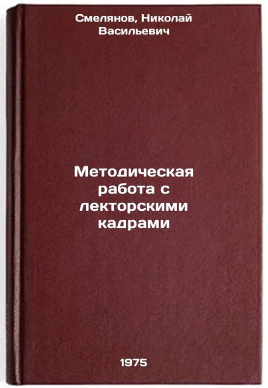 In Russian. Smelyanov, Nikolai Vasilievich. Methodological work with lecturer cadres. Leningrad: 1975. Metodicheskaya rabota s lektorskimi kadrami. In Russian /Methodological work with lecturers. All images are for identification of editions only. Several books of the same edition may be available. Please feel free to request photos of available books. SKU7005364