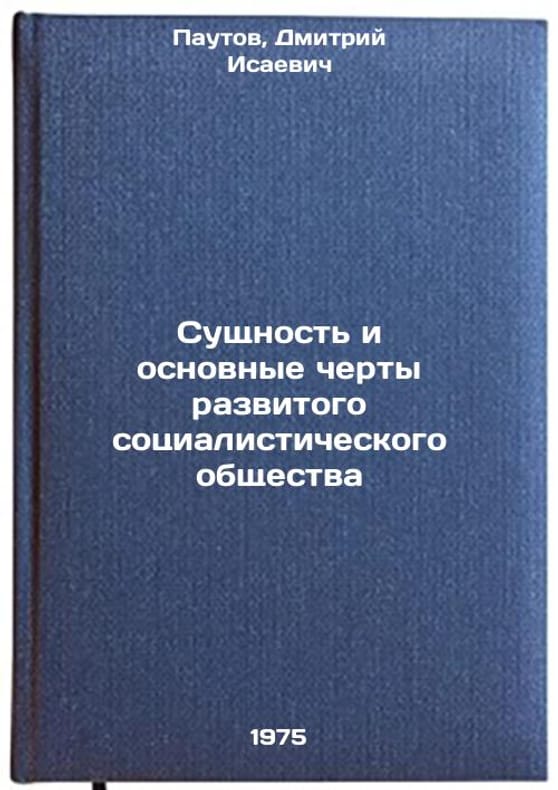 In Russian. Pautov, Dmitry Isaevich. The essence and main features of a developed socialist society. Leningrad: 1975. Sushchnost' i osnovnye cherty razvitogo sotsialisticheskogo obshchestva. In Russian /The Essence and Fundamentals of a Developed Socialist Society. All images are for identification of editions only. Several books of the same edition may be available. Please feel free to request photos of available books. SKU7008155