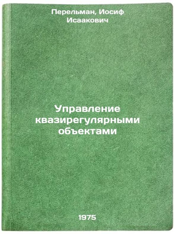 In Russian. Perelman, Joseph Isaakovich. Control of quasi-regular objects. Moscow: 1975. Upravlenie kvaziregulyarnymi obektami. In Russian /Management of quasi-regular facilities. All images are for identification of editions only. Several books of the same edition may be available. Please feel free to request photos of available books. SKU7008667