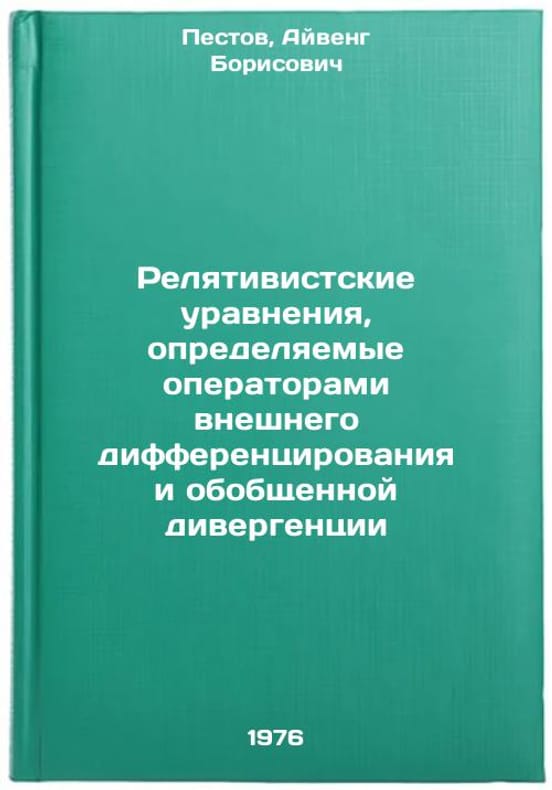 In Russian. Pestov, Ivang Borisovich. Relativistic equations determined by operators of external differentiation and generalized divergence. Relyativistskie uravneniya, opredelyaemye operatorami vneshnego differentsirovaniya i obobshchennoy divergentsii. In Russian /Relativistic equations determined by operators of external differentiation and generalized divergence . All images are for identification of editions only. Several books of the same edition may be available. Please feel free to request photos of available books. SKU7009016