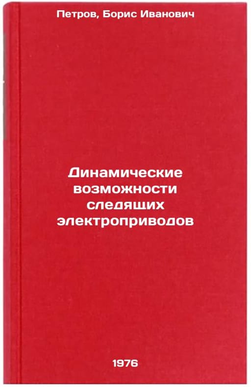 In Russian. Petrov, Boris Ivanovich. Dynamic Possibilities of Electric Drive Tracking. Moscow: Energiya, 1976. Dinamicheskie vozmozhnosti sledyashchikh elektroprivodov. In Russian /Dynamic Capabilities of Electric Tracking Powers . All images are for identification of editions only. Several books of the same edition may be available. Please feel free to request photos of available books. SKU7009112