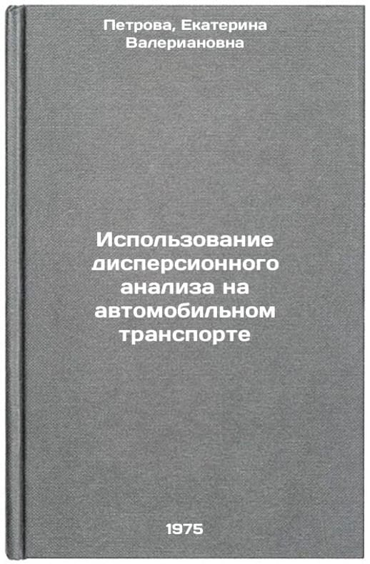 In Russian. Petrova, Ekaterina Valerianovna. Use of dispersion analysis in road transport. Moscow: MIU, 1975. Ispol'zovanie dispersionnogo analiza na avtomobil'nom transporte. In Russian /Use of dispersion analysis in road transport. All images are for identification of editions only. Several books of the same edition may be available. Please feel free to request photos of available books. SKU7009276