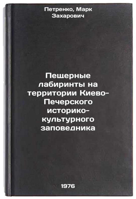 In Russian. Petrenko, Mark Zakharovich. Cave labyrinths in the territory of the Kyiv-Pechersk Historical and Cultural Reserve. Kyiv: Mistetstvo, 1976. Peshchernye labirinty na territorii Kievo-Pecherskogo istoriko-kul'turnogo zapovednika. In Russian /Cave labyrinths in the territory of the Kyiv-Pechersk Historical and Cultural Reserve . All images are for identification of editions only. Several books of the same edition may be available. Please feel free to request photos of available books. SKU7009457