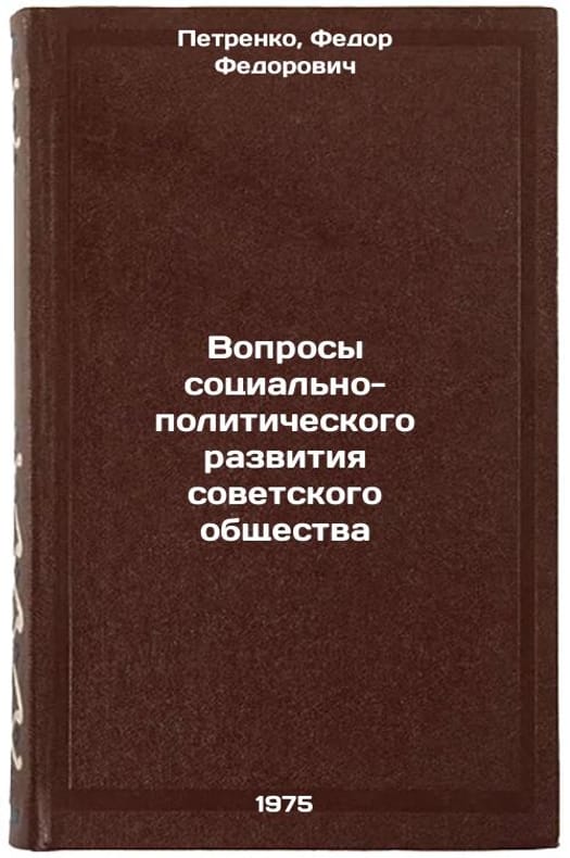 In Russian. Petrenko, Fedor Fedorovich. Issues of Social and Political Development of Soviet Society. Moscow: Politizdat, 1975. Voprosy sotsial'no-politicheskogo razvitiya sovetskogo obshchestva. In Russian /Issues of Social and Political Development of Soviet Society. All images are for identification of editions only. Several books of the same edition may be available. Please feel free to request photos of available books. SKU7009464