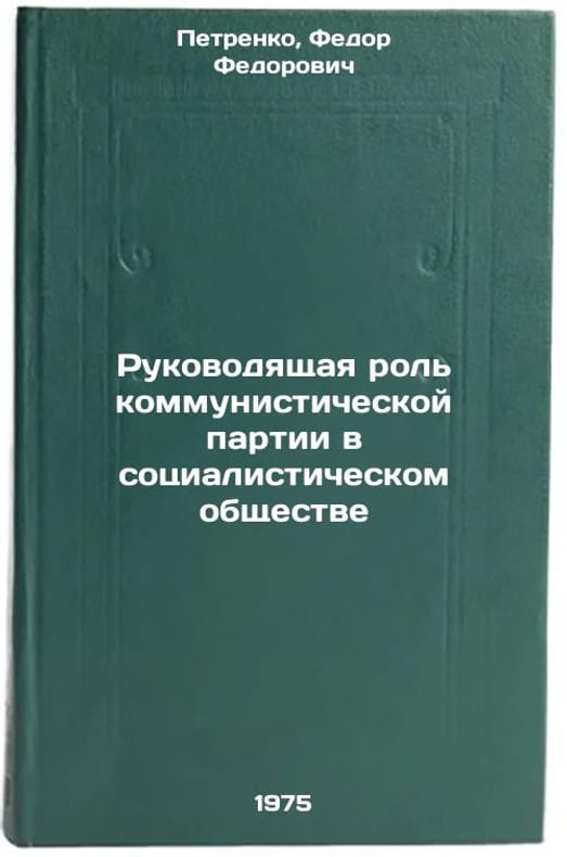 In Russian. Petrenko, Fedor Fedorovich. The Leading Role of the Communist Party in Socialist Society. Moscow: Politizdat, 1975. Rukovodyashchaya rol' kommunisticheskoy partii v sotsialisticheskom obshchestve. In Russian /Leadership of the Communist Party in Socialist Society. All images are for identification of editions only. Several books of the same edition may be available. Please feel free to request photos of available books. SKU7009465