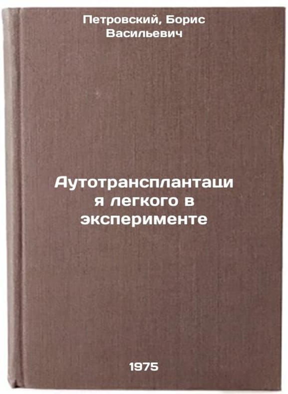 In Russian. Petrovsky, Boris Vasilievich. Autotransplantation of a lung in an experiment. Moscow: Science, 1975. Autotransplantatsiya legkogo v eksperimente. In Russian /Autolung Transplantation in Experiment. All images are for identification of editions only. Several books of the same edition may be available. Please feel free to request photos of available books. SKU7009940