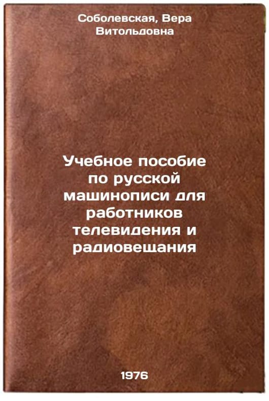 In Russian. Dmitricheva-Sobolevskaya, Vera Vitoldovna. A textbook on Russian typing for television and radio broadcasting workers. Moscow: USSR Comment on Television and Radio Broadcasting, 1978 Uchebnoe posobie po russkoy mashinopisi dlya rabotnikov televideniya i radioveshchaniya/Training Manual on Russian Typing for Television and Radio Broadcasters In Russian. All images are for identification of editions only. Several books of the same edition may be available. Please feel free to request photos of available books. SKU7622369