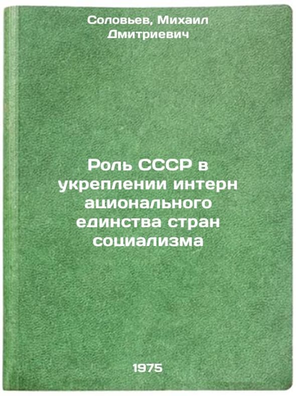 In Russian. Soloviev, Mikhail Dmitrievich. The Role of the USSR in Strengthening the International Unity of the Socialist Countries. Leningrad: The Organization of Leningrad, 1975. Rol' SSSR v ukreplenii internatsional'nogo edinstva stran sotsializma. In Russian /The role of the USSR in strengthening the international unity of the socialist countries. All images are for identification of editions only. Several books of the same edition may be available. Please feel free to request photos of available books. SKU7010518