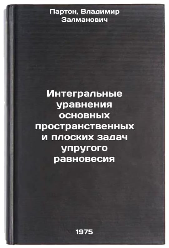 In Russian. Parton, Vladimir Zalmanovich. Integral equations of the basic spatial and flat problems of elastic equilibrium. Moscow: 1975. Integral'nye uravneniya osnovnykh prostranstvennykh i ploskikh zadach uprugogo ravnovesiya. In Russian /Integral equations of the basic spatial and flat problems of elastic equilibrium. All images are for identification of editions only. Several books of the same edition may be available. Please feel free to request photos of available books. SKU7011289