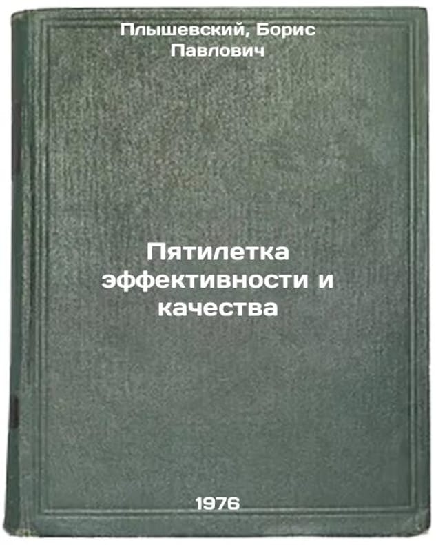 In Russian. Plyshevsky, Boris Pavlovich. Five-Year Plan of Efficiency and Quality. Moscow: Politizdat, 1976. Pyatiletka effektivnosti i kachestva. In Russian /Five-Year Performance and Quality Plan . All images are for identification of editions only. Several books of the same edition may be available. Please feel free to request photos of available books. SKU7011763