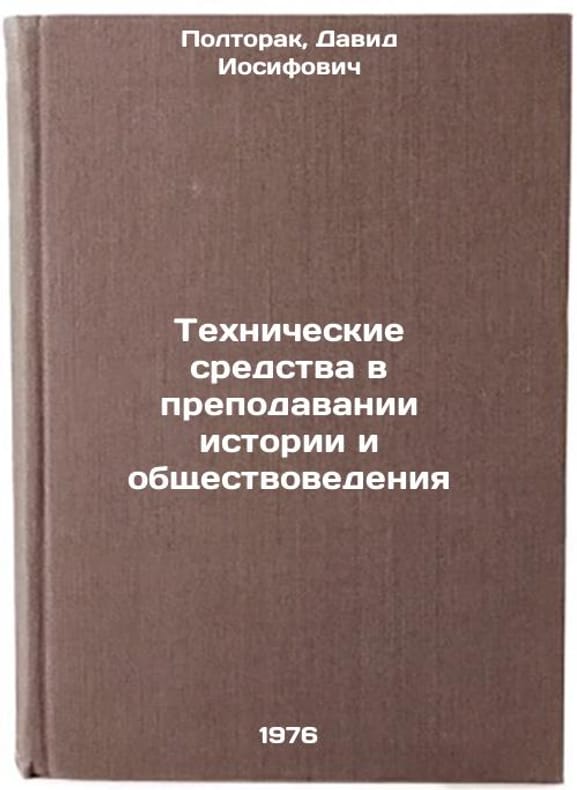 In Russian. Poltorak, David Iosifovich. Technical means in the teaching of history and social science. Moscow: Enlightenment, 1976. Tekhnicheskie sredstva v prepodavanii istorii i obshchestvovedeniya. In Russian /Technology in the Teaching of History and Social Science . All images are for identification of editions only. Several books of the same edition may be available. Please feel free to request photos of available books. SKU7012954