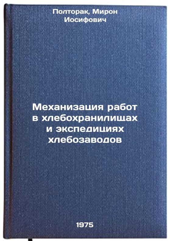 In Russian. Poltorak, Miron Iosifovich. The mechanization of work in bread stores and bakery expeditions. Moscow: TsNIITEIpishprom, 1975. Mekhanizatsiya rabot v khlebokhranilishchakh i ekspeditsiyakh khlebozavodov. In Russian /Mechanization of Bakery Stores and Expeditions. All images are for identification of editions only. Several books of the same edition may be available. Please feel free to request photos of available books. SKU7012955