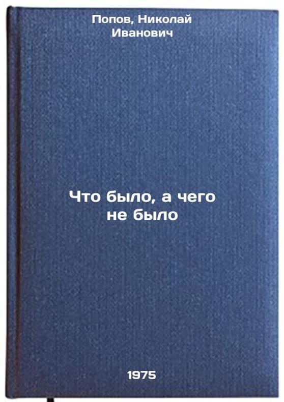 In Russian. Popov, Nikolai Ivanovich. What was and what was not. Moscow: Det. lit., 1975. All images are for identification of editions only. Several books of the same edition may be available. Please feel free to request photos of available books. SKU7013323