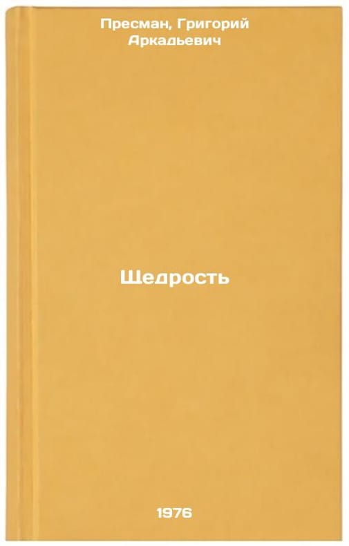 In Russian. Presman, Grigory Arkadevich. Generosity. Voronezh: Tsentr.-Chernozem. book-edition, 1976. All images are for identification of editions only. Several books of the same edition may be available. Please feel free to request photos of available books. SKU7014862