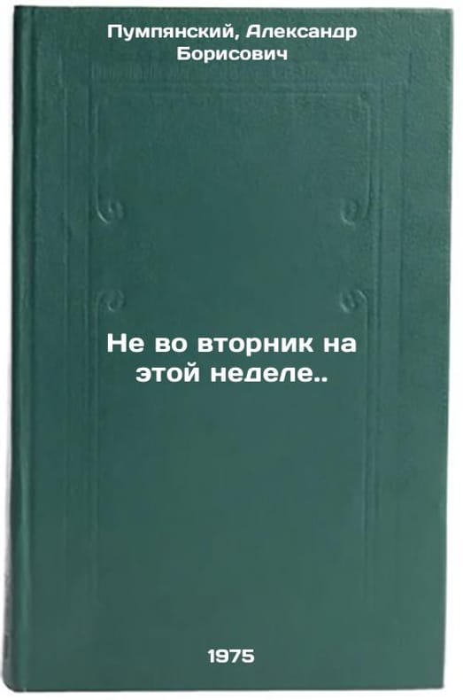 In Russian. Pumpyansky, Alexander Borisovich. Not on Tuesday of this week. Moscow: The Power Guard, 1975. All images are for identification of editions only. Several books of the same edition may be available. Please feel free to request photos of available books. SKU7015814