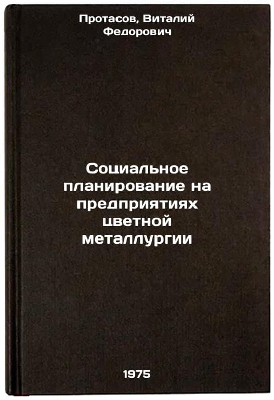 In Russian. Protasov, Vitaly Fedorovich. Social Planning in Non-Ferrous Metallurgy Enterprises. Moscow: Metallurgy, 1975. Sotsial'noe planirovanie na predpriyatiyakh tsvetnoy metallurgii. In Russian /Social Planning in Non-Ferrous Metals. All images are for identification of editions only. Several books of the same edition may be available. Please feel free to request photos of available books. SKU7016279