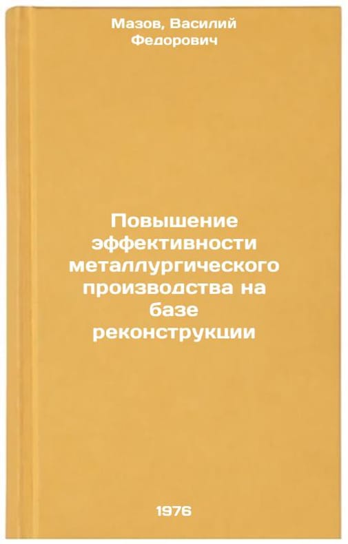 In Russian. Mazov, Vasily Fedorovich. Improving the efficiency of metallurgical production on the basis of reconstruction. Kyiv: Technika, 1976. Povyshenie effektivnosti metallurgicheskogo proizvodstva na baze rekonstruktsii. In Russian /Improving the efficiency of metallurgical production through reconstruction . All images are for identification of editions only. Several books of the same edition may be available. Please feel free to request photos of available books. SKU7018390