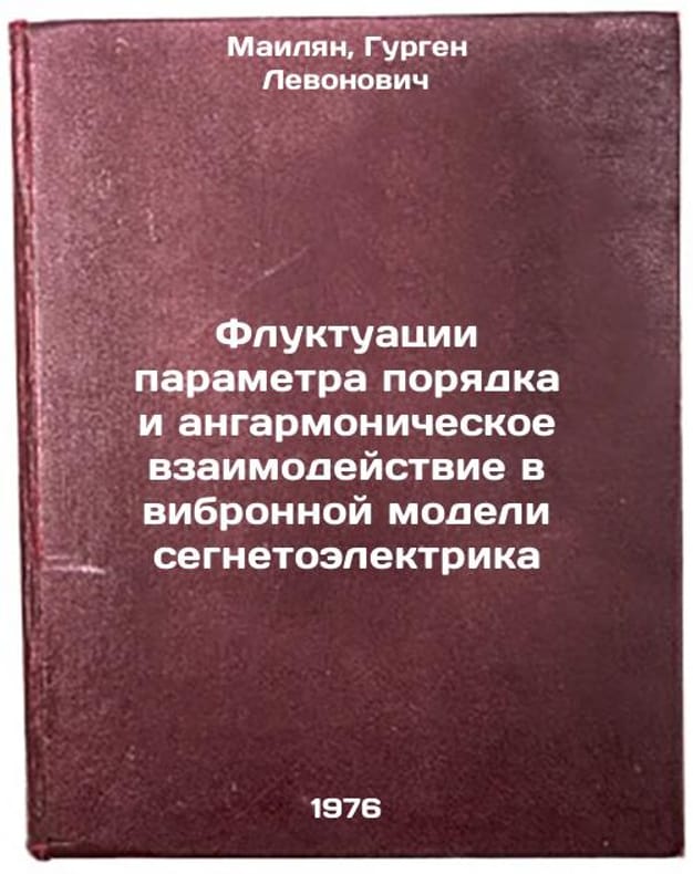 In Russian. Mailyan, Gurgen Levonovich. The fluctuations of the order parameter and the harmonic interaction in the vibration model of a segnetoelectric. Fluktuatsii parametra poryadka i angarmonicheskoe vzaimodeystvie v vibronnoy modeli segnetoelektrika. In Russian /The fluctuations of the order parameter and the harmonic interaction in the vibration model of the segnetoelectric . All images are for identification of editions only. Several books of the same edition may be available. Please feel free to request photos of available books. SKU7018433