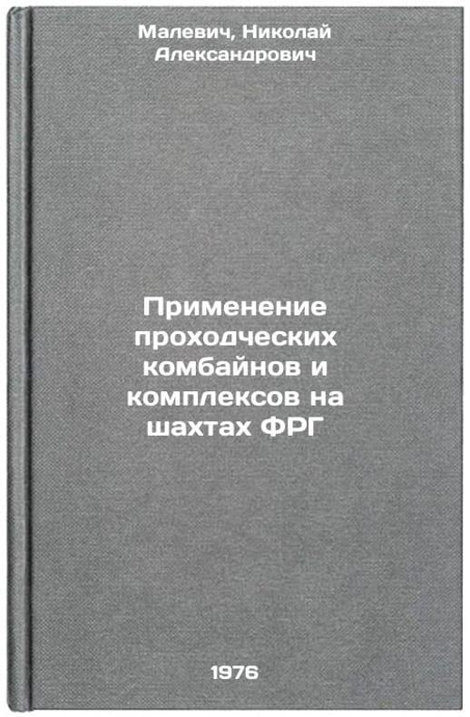 In Russian. Malevich, Nikolai Alexandrovich. The Application of Processing Combines and Complexes at Mines in Germany. Moscow: Central Research Institute of EIUCoal, 1976. Primenenie prokhodcheskikh kombaynov i kompleksov na shakhtakh FRG. In Russian /Application of harvesters and complexes in German mines . All images are for identification of editions only. Several books of the same edition may be available. Please feel free to request photos of available books. SKU7019847