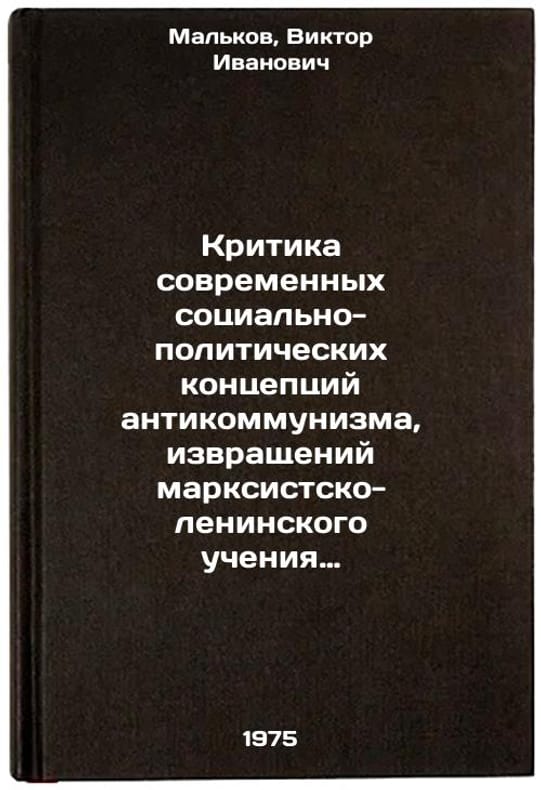 In Russian. Malkov, Viktor Ivanovich. Criticism of modern socio-political concepts of anti-communism, perversions of Marxist-Leninist doctrine on the defense of socialism. Leningrad: 1975. Kritika sovremennykh sotsial'no-politicheskikh kontseptsiy antikommunizma, izvrashcheniy marksistsko-leninskogo ucheniya o zashchite sotsializma. In Russian /Criticism of contemporary socio-political concepts of anti-communism, perversions of Marxist-Leninist doctrine on the defense of socialism. All images are for identification of editions only. Several books of the same edition may be available. Please feel free to request photos of available books. SKU7020007