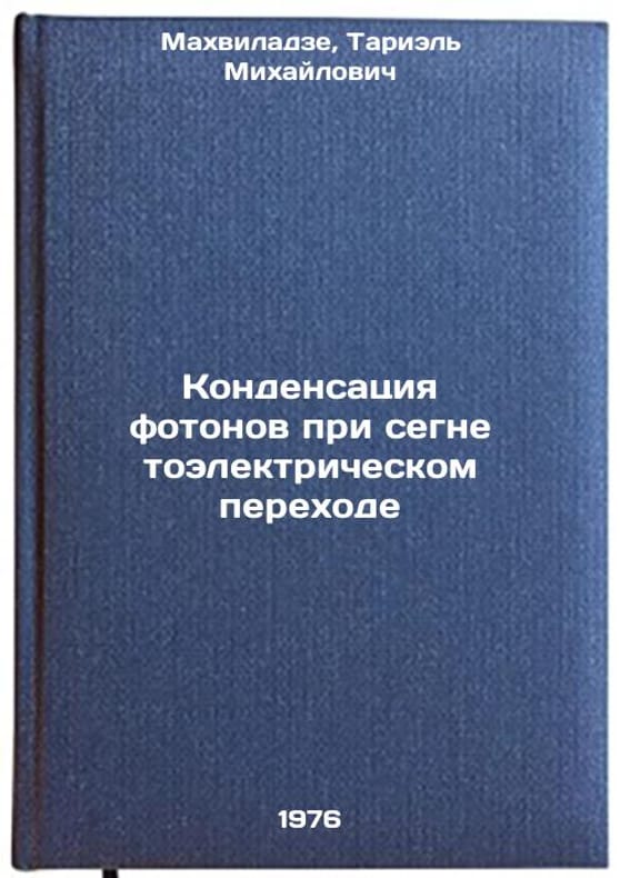 In Russian. Makhviladze, Tariel Mikhailovich. Photon condensation in segnetoelectric transition. Moscow: 1976. Kondensatsiya fotonov pri segnetoelektricheskom perekhode. In Russian /Photon condensation in segnetoelectric transition . All images are for identification of editions only. Several books of the same edition may be available. Please feel free to request photos of available books. SKU7020177